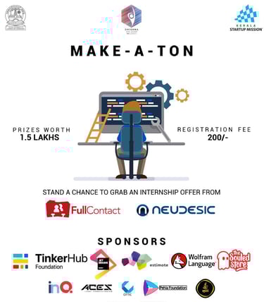 Hackathon Organizer, Make-A-Ton: Organised South India's largest University hackathon in its pioneering seasons [24-hr hackathons with 350+ applications] (Kochi, India).