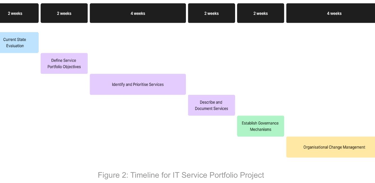 Prioritising based on the current company needs, I recommend developing an IT service portfolio to evaluate services currently offered and gain insights about what might be needed in the future.